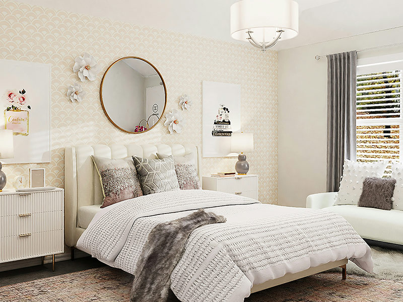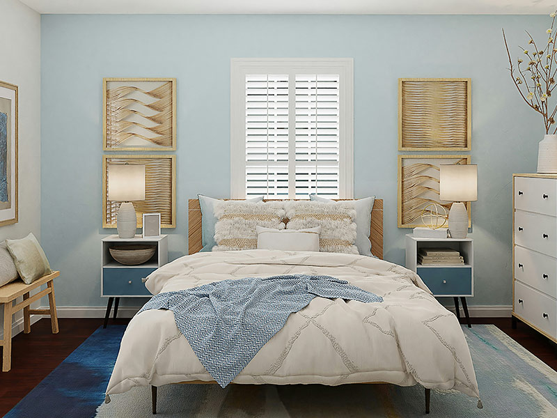 - ・ベッドを中央に配置して両側に通路を確保するとホテルライクな雰囲気に