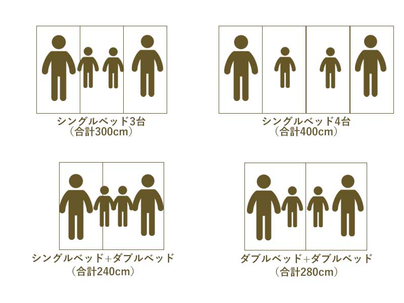 - ・川の字寝をするならシングル2台を連結して200cm幅にするのがおすすめ