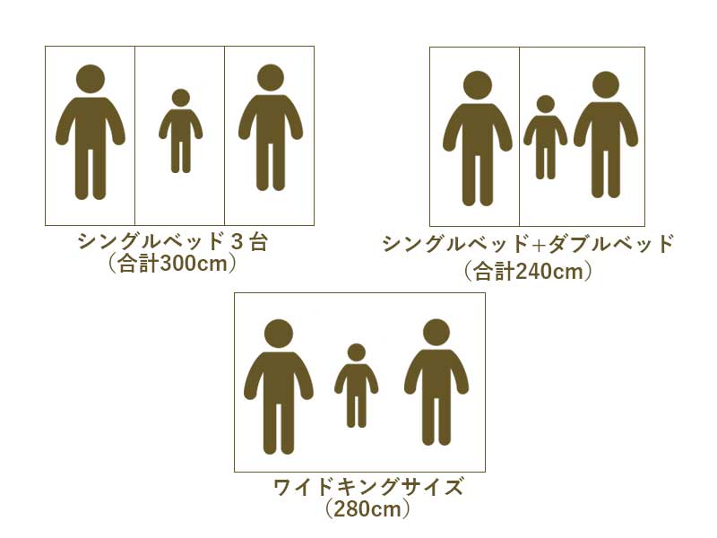 | ワイドキング(200cm以上) | 200〜280 | 大人2人+子ども1~3人 |
