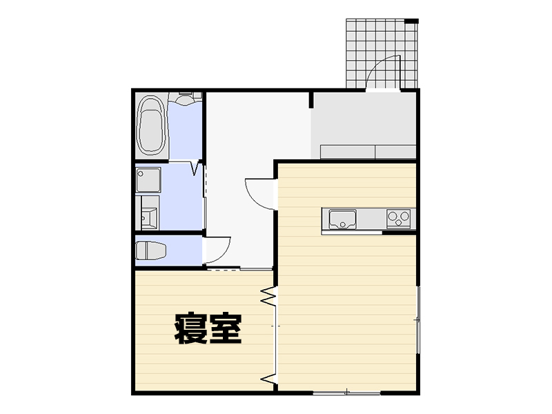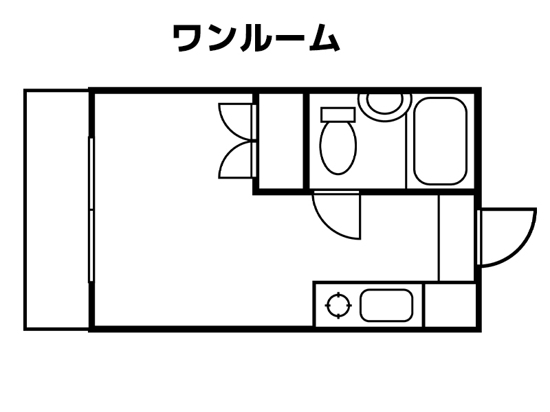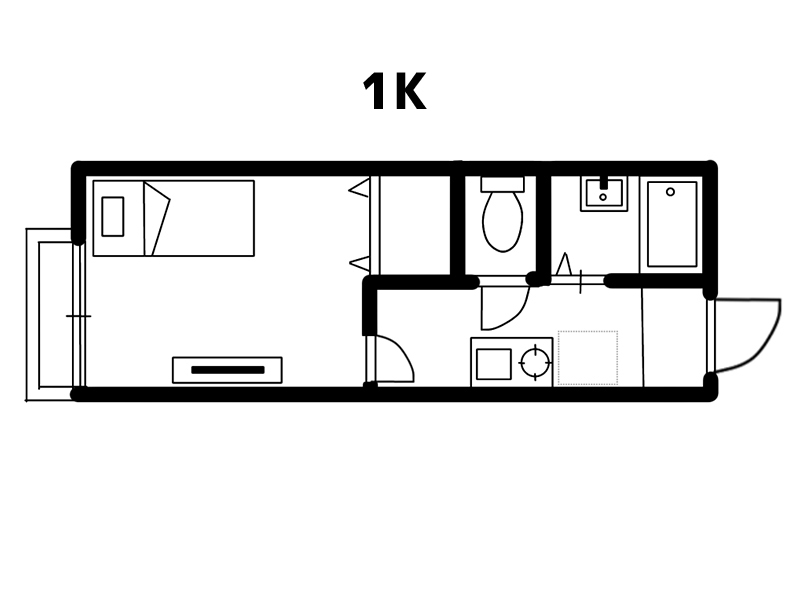 1Kとワンルームの最大の違いは、部屋とキッチンとの間に仕切りがあるかないかになります。