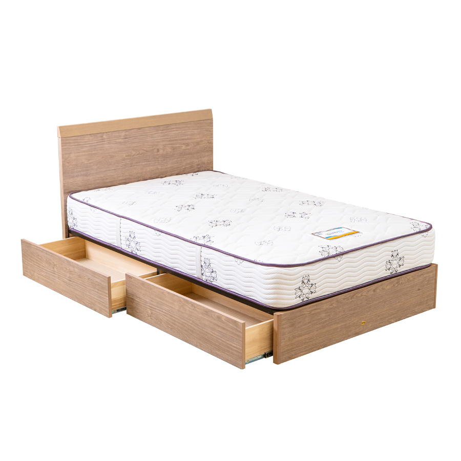 ベッド下を収納にすれば、お部屋の片付けもすっきり。引き出し部は左右どちらにも取り付け可能です。
