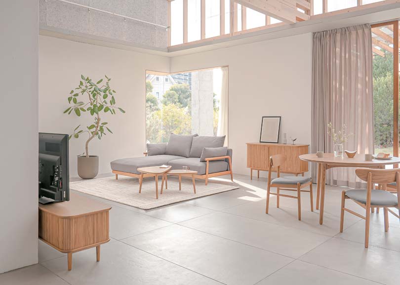 日本のリビングやダイニングに馴染む、おもてなしの機能性とサイズ感。女性の視点から生まれた気配りが、暮らしにそっと寄り添う北欧テイストの家具シリーズです。