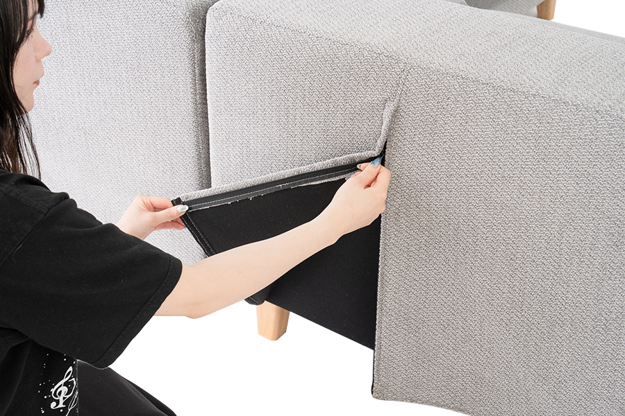 ソファの張地が全て着脱可能なカバーで出来たソファです。フルカバーリングなら、ファブリックカバーに付いた汚れや匂いもクリーニングすることが出来てソファを清潔に保てます。(ドライクリーニング対応)