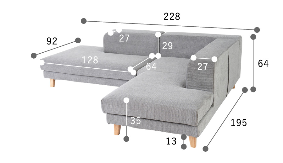 | 素材 | 張地:ファブリック(ドライクリーニング可) 本体:ウレタン、Sバネ 脚:木脚 |