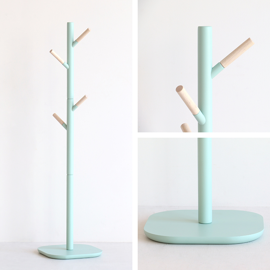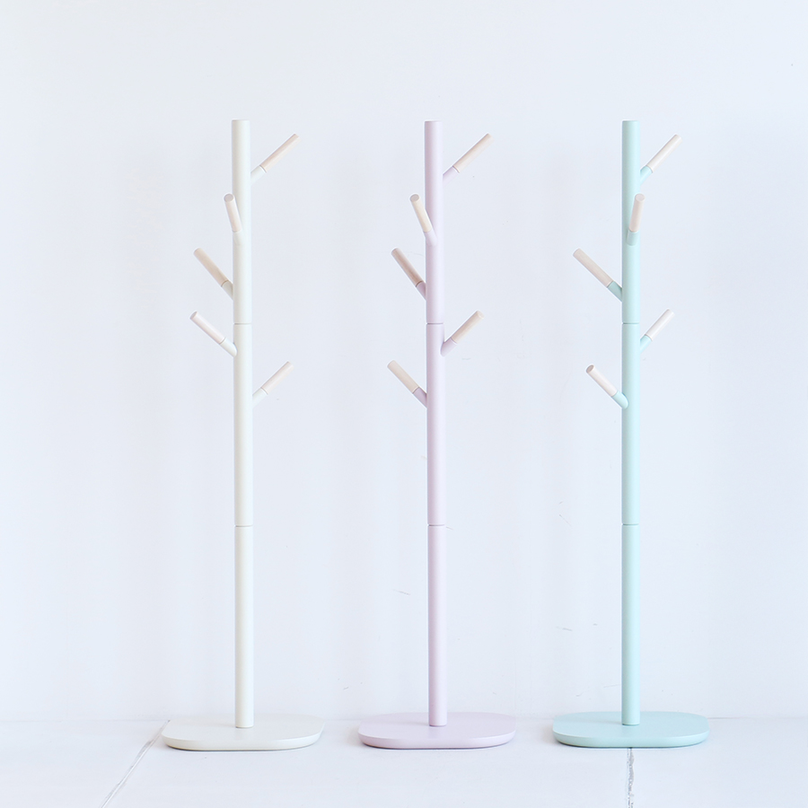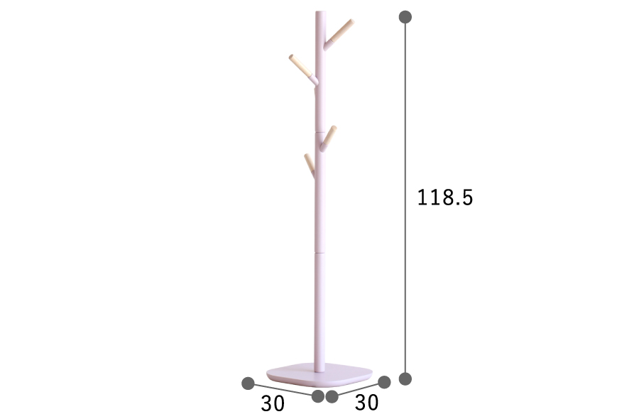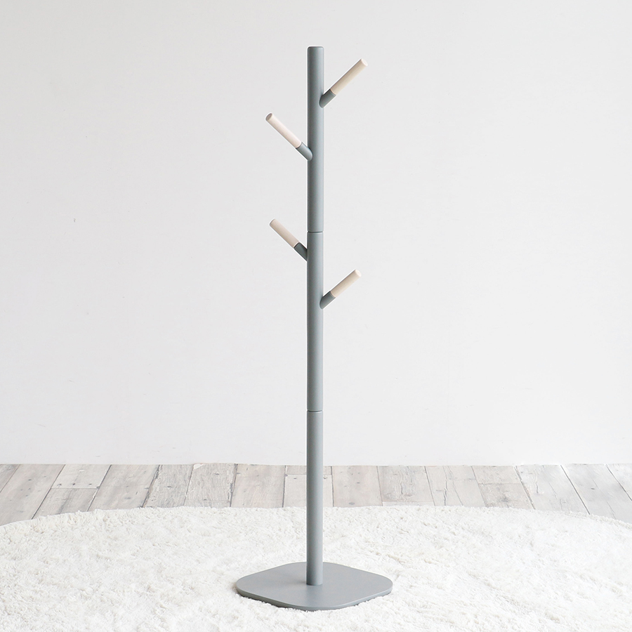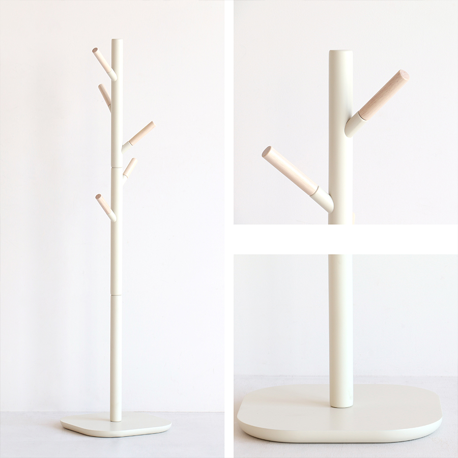 枝のように伸びたフックとやさしい色合いが魅力のキッズ用ポールハンガー。 土台以外はすべて天然木ラバーウッドを使用し、ナチュラルな温もりを感じられる仕上がりです。
