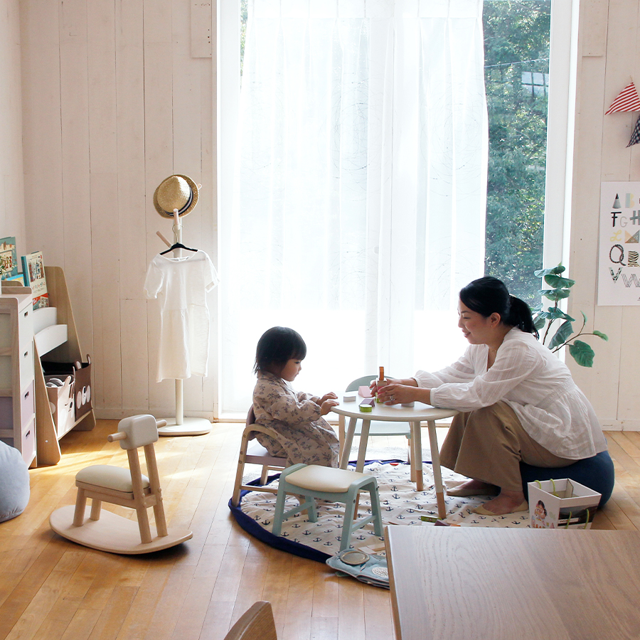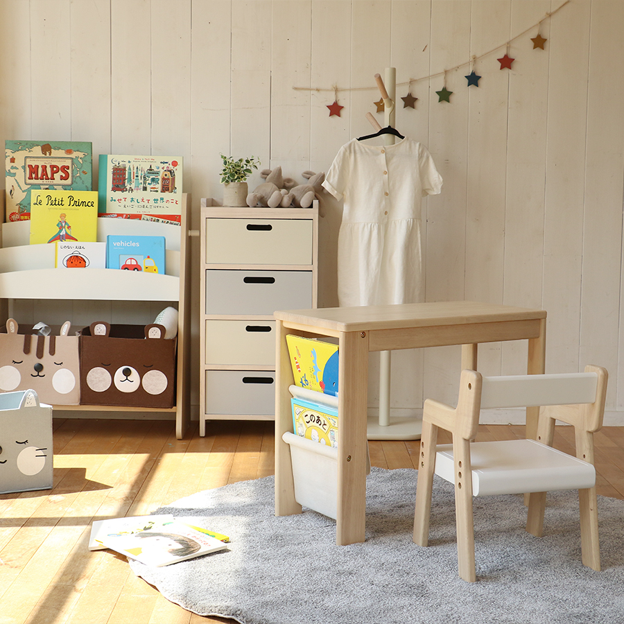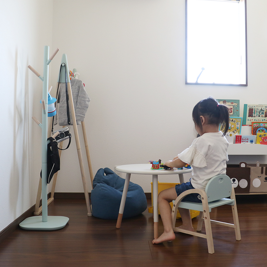 安定感のある円形の土台は、バッグや小物を置くスペースとしても活躍します。 幼稚園バッグや帽子をまとめておけば、朝の支度もスムーズです。土台の角は丸く加工されており、素足で当たっても痛くない安心設計です。