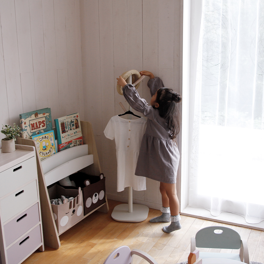 服やバッグを自分で掛けたり片付けたりすることで、お子様の自立心や整理整頓の習慣が自然と身につきます。