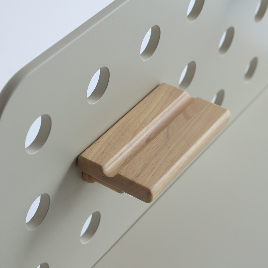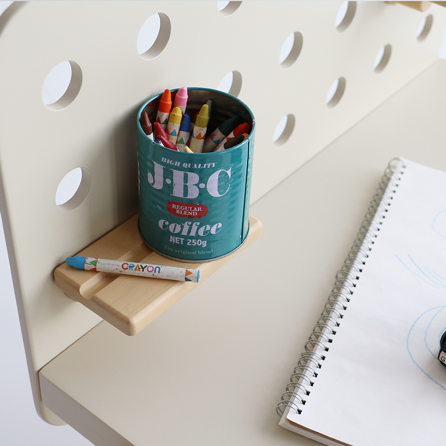 小さな手でも取り付けられる棚板は、飾る・置く・立てかけるなど使い方も様々。お気に入りの絵本や小物を並べて、自分だけのスペースを作る楽しさを感じられます。
