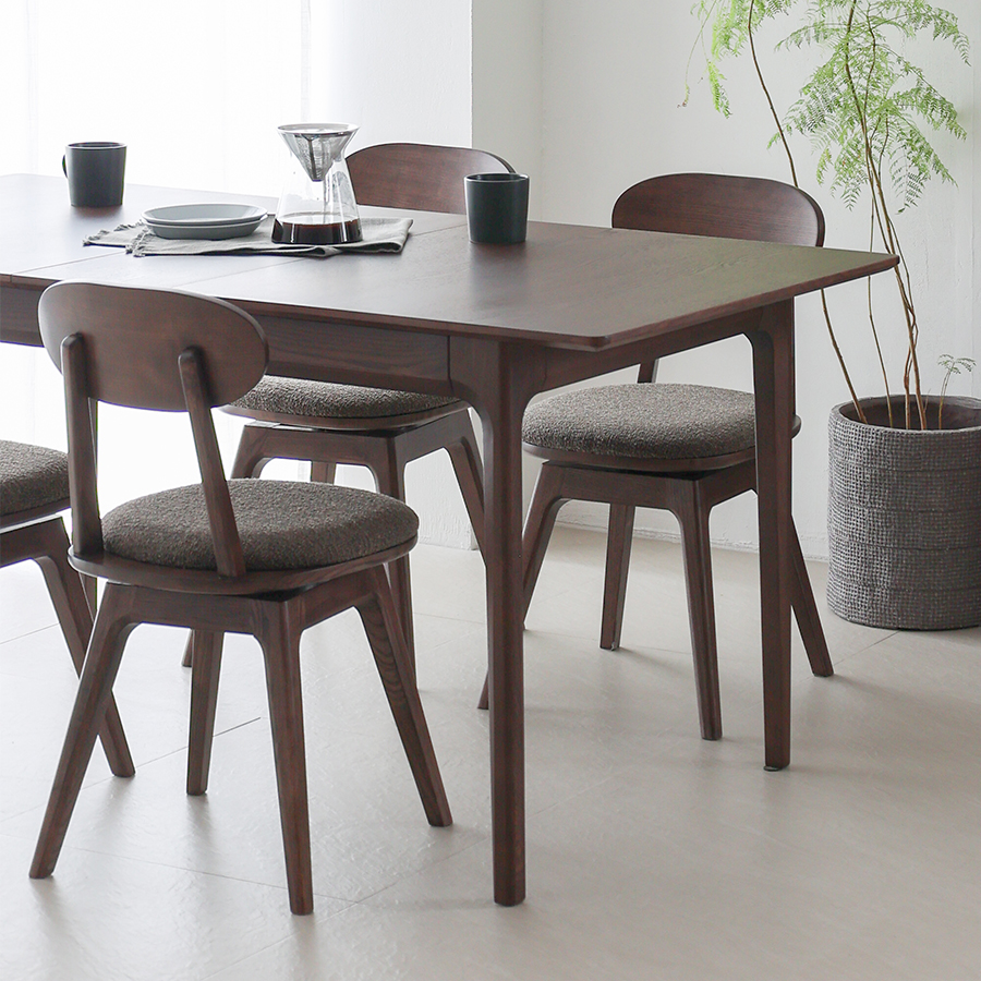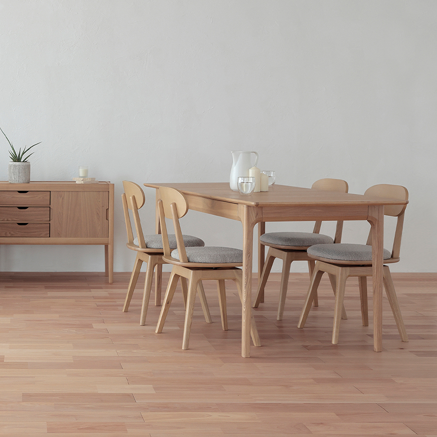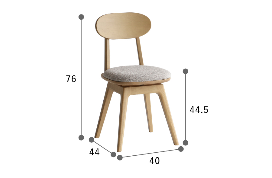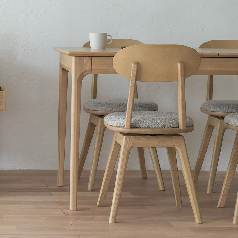 椅子を引かずに立てる小ぶりな回転式ダイニングチェア
