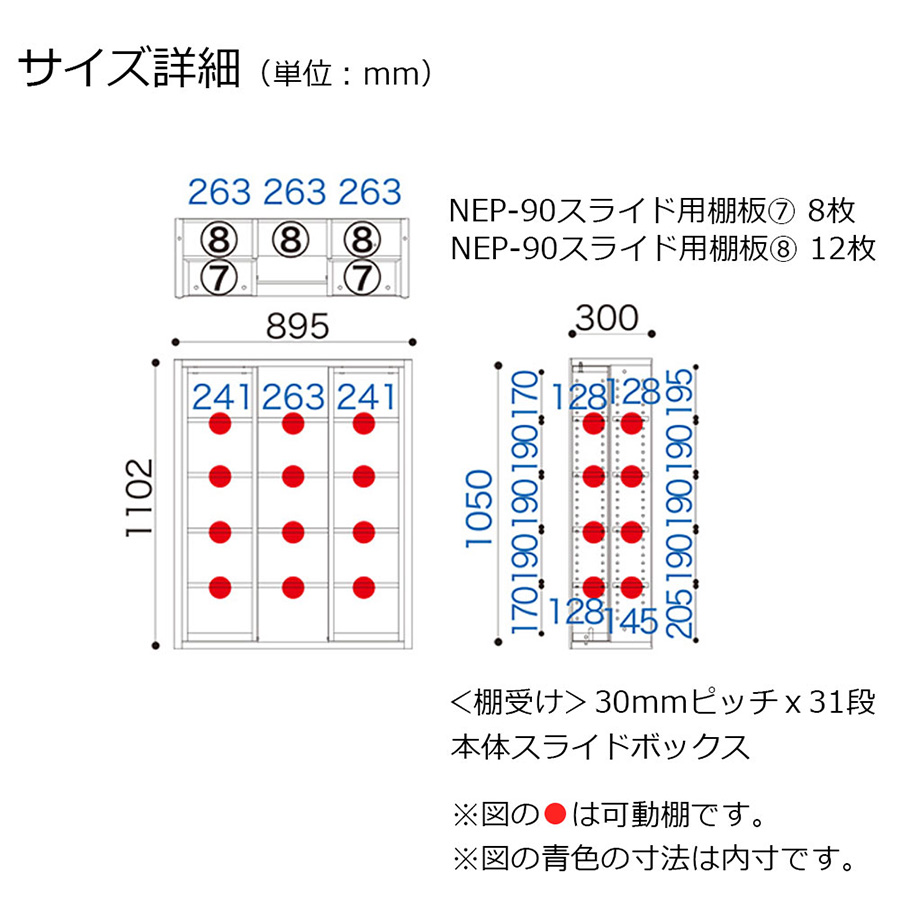 スライド用棚板(w241):8枚 スライド用棚板(w263):12枚 |