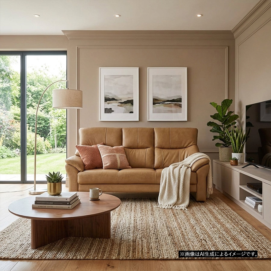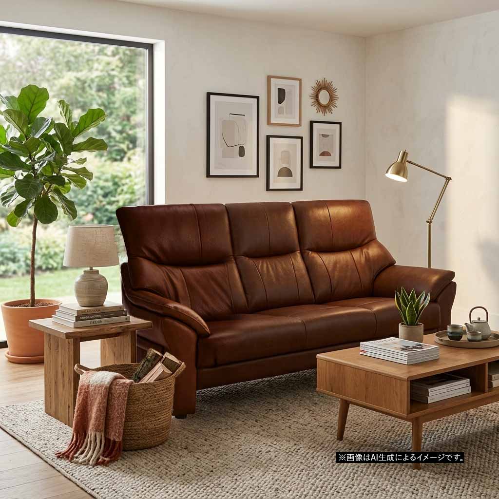 背もたれ・座面・肘掛けなど、体が触れる主要部分には上質な本革を使用。日々の使用で負荷が集中する箇所だからこそ、素材にこだわりました。 しっとりとした肌触りと優れた耐久性を兼ね備え、上品な存在感を放つハイバックソファです。