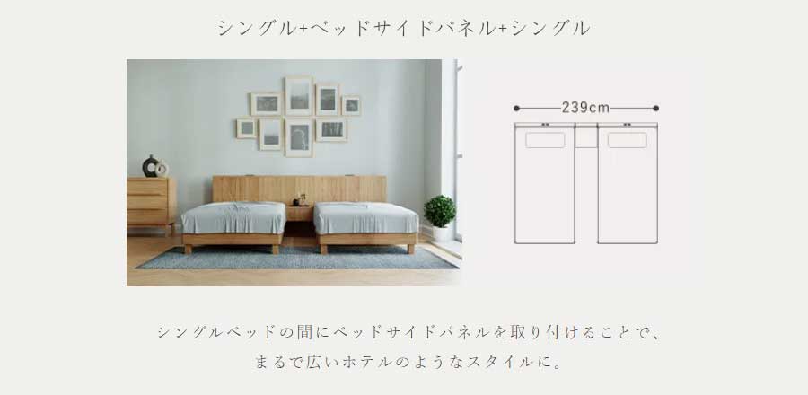 ※ベッドサイドパネル単体では自立しません。必ずベッドフレームと接続してご使用ください。