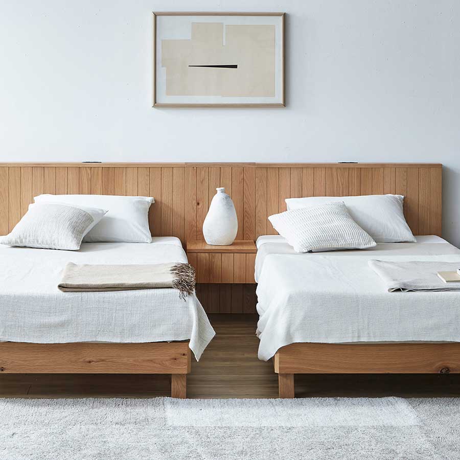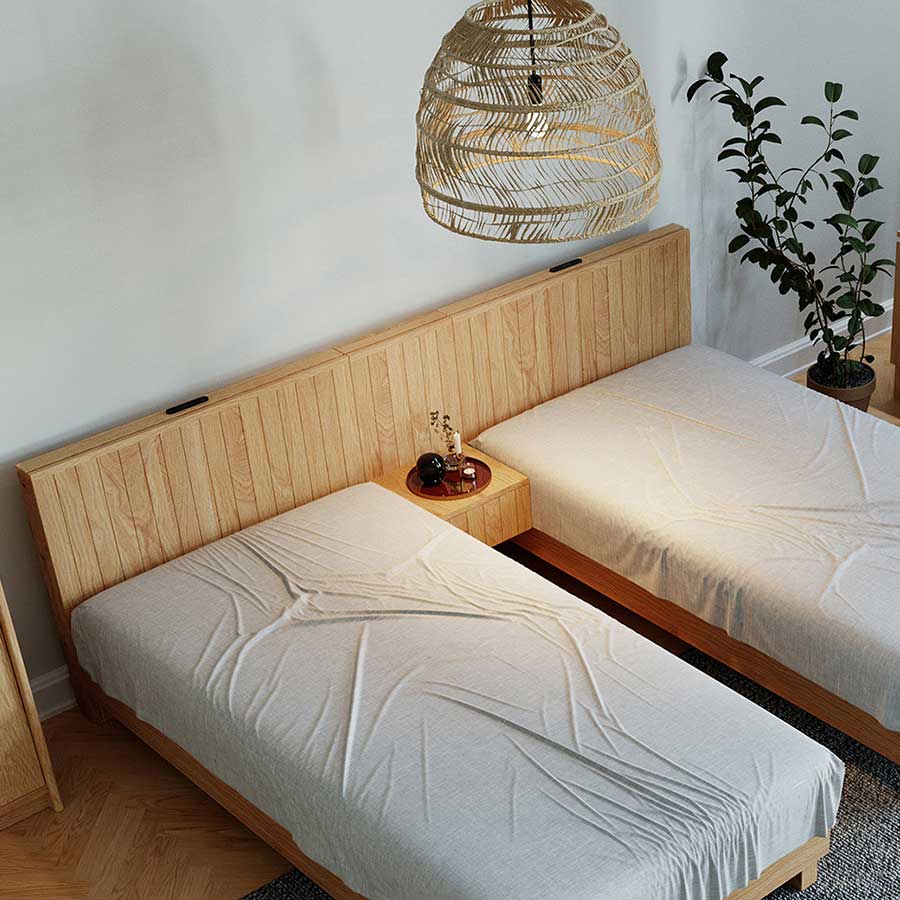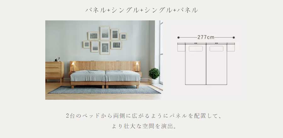 ベッドフレームの左右どちらにも接続が可能となっており、様々なレイアウトが実現できます。