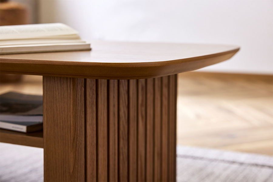 本体は全てウォールナット・オーク突板/オーク無垢材からなる上質な仕上げ。経年変化を愉しみ、長くお使いいただけます。