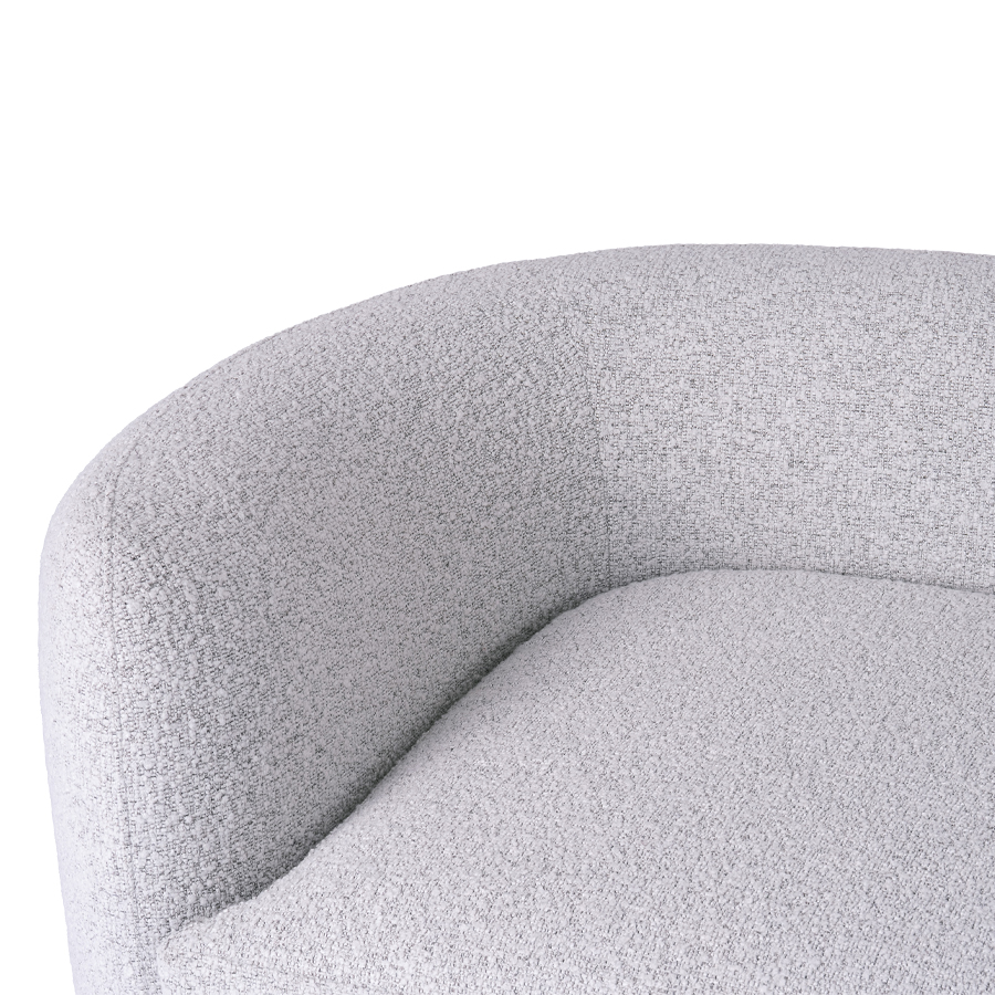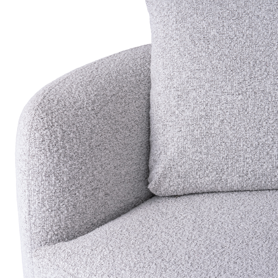 背もたれや肘置き、細部に至るまで丸みを持たせたデザイン。 背面から見ても綺麗なデザインなので、お部屋の中央にレイアウトしても美しく、動線の邪魔になりにくい設計です。